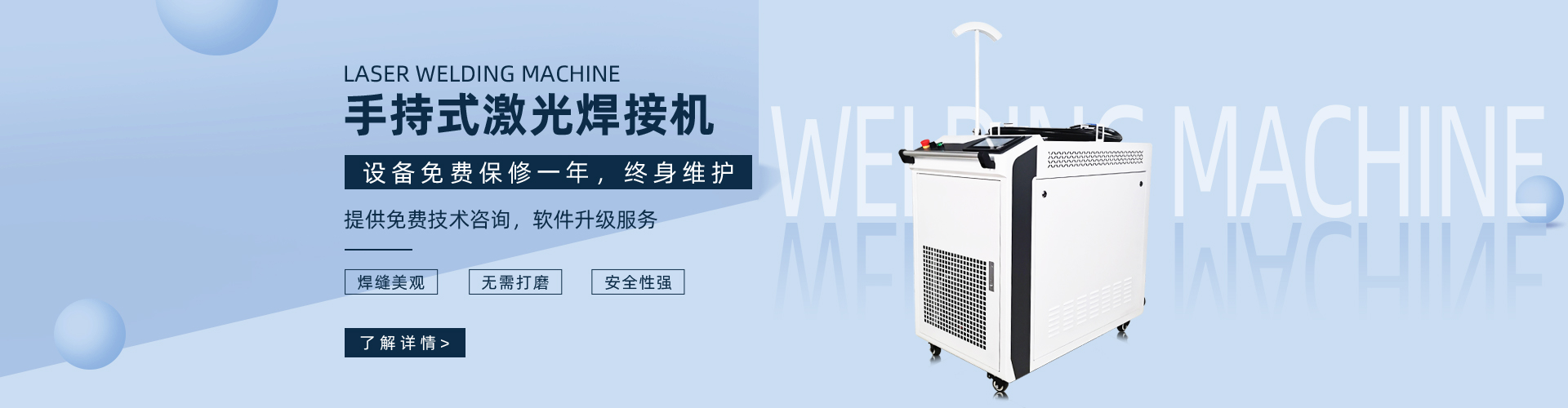 激光焊接機(jī)操作簡單,不需要專業(yè)技術(shù)人員,普通員工在幾分鐘內(nèi)即可達(dá)到專業(yè)大師的焊接水平,激光焊接機(jī)移動式操作方便,是一種新型的焊接工藝,可實現(xiàn)鋁、鐵、銅、不銹鋼等金屬材料的點焊、對接...